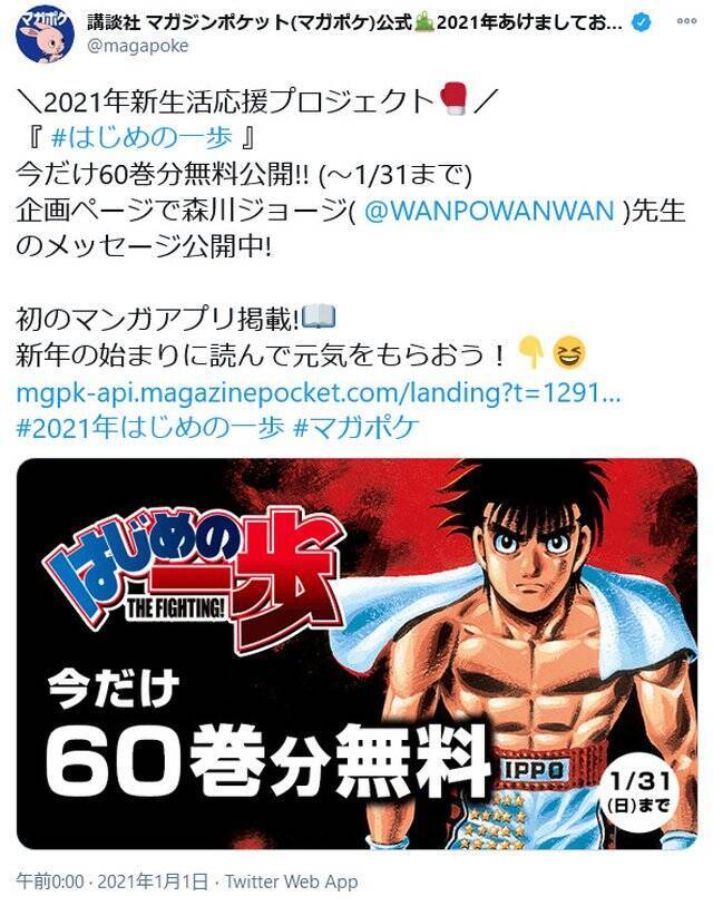 マガポケ で傑作ボクシング漫画 はじめの一歩 が60巻無料 21新生活応援プロジェクト 21年1月2日 エキサイトニュース